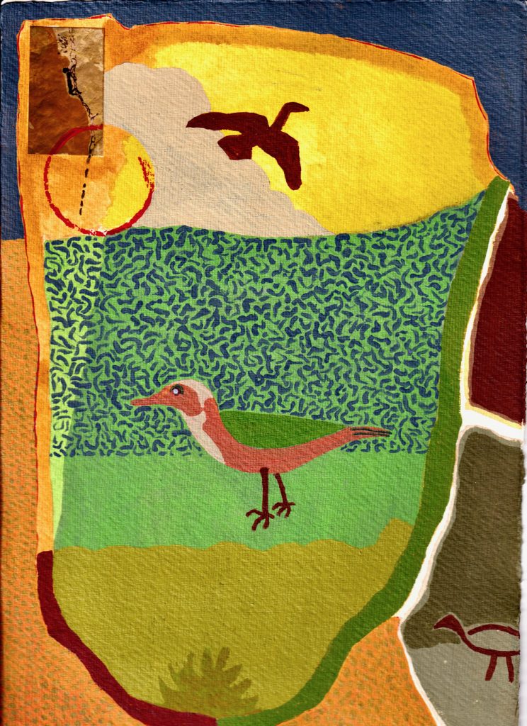 In folklore the curlew’s call is often linked to sorrow. Yet its haunting cry has a trailing, bubbling, musical, albeit mournful, quality that is also profoundly beautiful. Curlews flying at dusk are said to have given rise to belief in The Seven Whistlers. On the hill by his house at nightfall, a man called John Pressdee would hear seven curlews pass over, but with never more than six calling at any one time. If a seventh should call he believed the world would end. In Grace Wells’ poem Curlew eleven curlews enchant and lift her until she flys, despite her knowledge of, and sadness at, their dwindling numbers.
